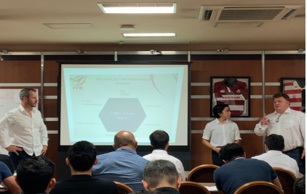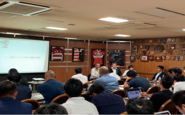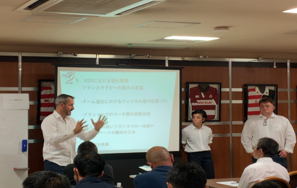 今回はU20国際大会を2連覇しているフランスラグビー協会から、フランスU20代表ピケロニ監督、ルチエール技術委員長をお招きし、フランスラグビーの若手育成の哲学と仕組みについてお話をいただきました。