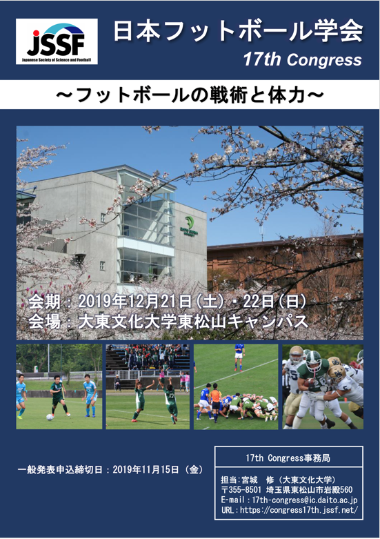 日本フットボール学会17th Congressの詳細はこちらのリンクよりご確認下さい。